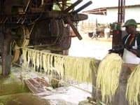 Harvesting is carried out by hand. All lower leaves, standing at an angle of more than 45 degrees to the vertical, are cut away from the bole of the plant with a sharp flexible knife. After harvesting, the leaves are transported to a central factory and decorticated to extract the cortex of ribbon fibres that run along the length of the leaves. Extracted fibres are extensively washed during decortication, sun dried, brushed to separate and align the individual strands of fibre, graded and packed into bales.